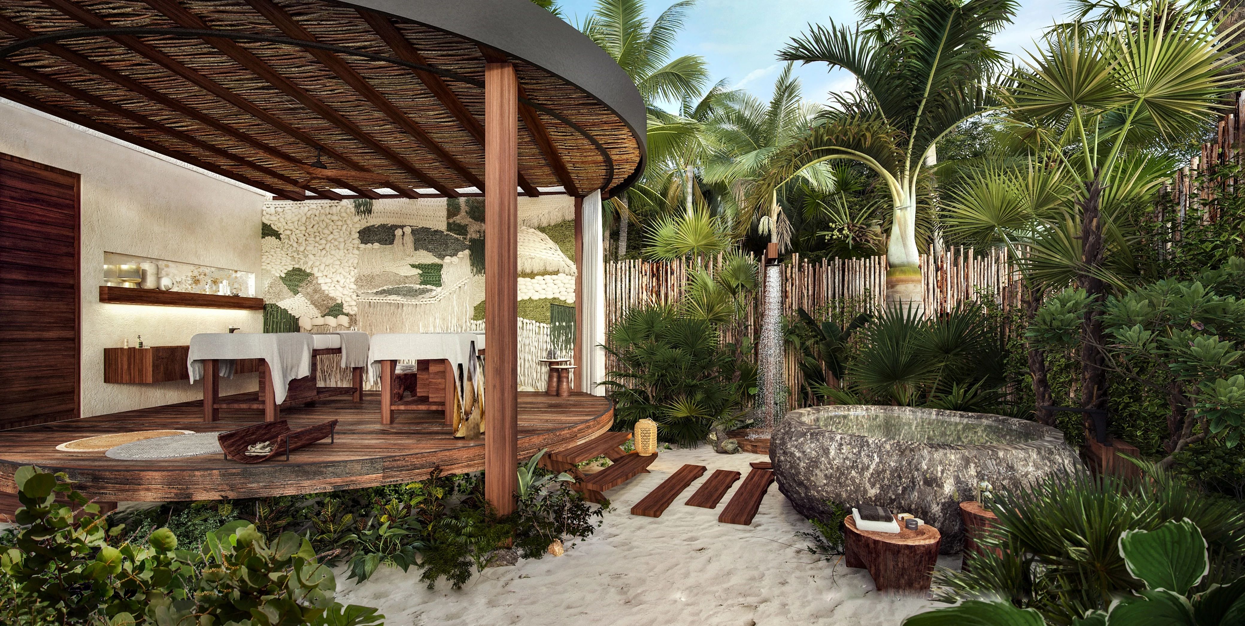 Our boho-elegant design is reflected in our earthy décor, extravagant cenote-inspired architecture, dedicated meditation areas and secluded pools surrounded by lush vegetation. Our exquisite beach club on the coastline embodies Tulum’s vibrant spirit while showcasing its pristine beaches and crystal-clear waters.
