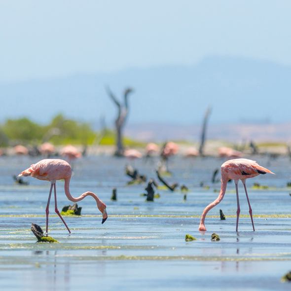 Least populated of the Netherlands Antilles islands off the coast of Venezuela, Bonaire is a place to enjoy water sports and observe nature. You´ll see thousands of tropical birds, including parrots and pink flamingos. Clear waters around the pink-coral reef island make it a superb diving spot.